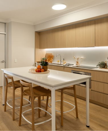 Các căn hộ một phòng ngủ của chúng tôi có phòng ngủ riêng và không gian học tập, cùng với phòng tắm riêng và khu bếp kết hợp với không gian sinh hoạt.