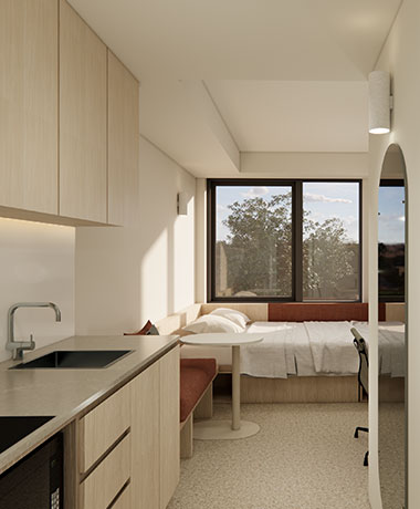 Sinh viên có thể lựa chọn giữa căn hộ hai phòng ngủ chung hoặc phòng studio riêng tư. Tất cả cư dân đều có thể sử dụng các tiện nghi chung của Iglu, bao gồm phòng tập thể dục, khu vực học tập và không gian sân thượng ngoài trời.